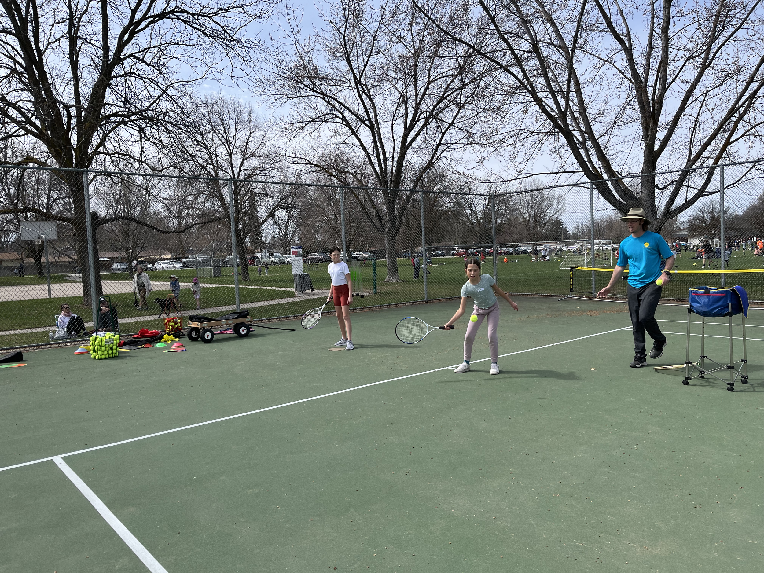 Learn basic tennis coordination, ball tracking, agility, teamwork, movement, and basic swings. All to get them to rally back and forth and have fun!